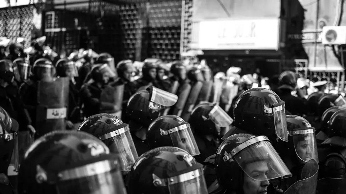 Riot gear started as a way to handle protests better. Before the American Revolution, police used deadly force to stop crowds. This showed the need for safer methods to keep order. In the early 1900s, France’s National Gendarmerie used mounted units to control angry crowds. By the 1930s, Poland gave riot police body armor, helmets, and shields. These tools helped protect officers and reduced harm to civilians.